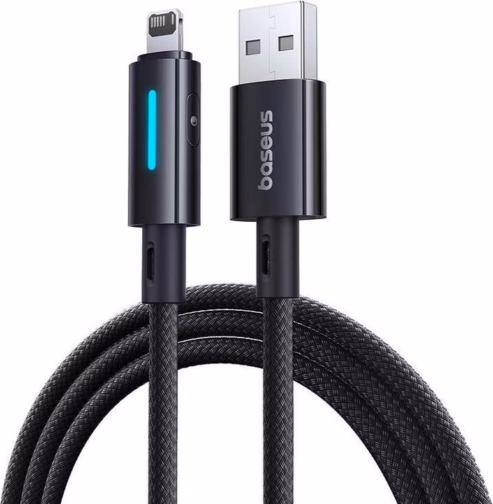 Baseus Lit Button-Control Fast Charging Data Cable USB-A to iP 2.4A 1m Cosmic Black