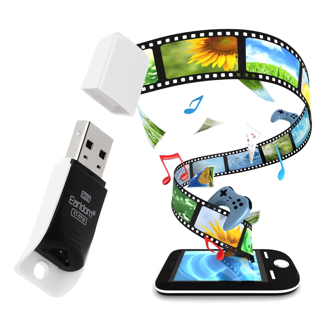 The adapter features a Micro SD card slot with a USB 2.0 connector, allowing easy transfer of the files you need between different devices or quickly reviewing photos/videos.