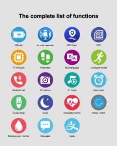 - ფიტნეს ტრეკერი: პრესის ვარჯიში,მაგიდის ჩოგბურთი, კალათბურთი, ბადმიტონი, ცოცვა,ველოსიპედები და ა.შ.
